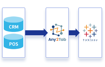 PassworkがCRMとPOSのデータ連携を担い、API連携やCSV出力の設定は不要。お使いのシステムを選ぶだけで、データ統合の仕組みが整います。手作業でのデータ加工から解放され、常に最新のデータをTableauで分析できる環境を実現します。