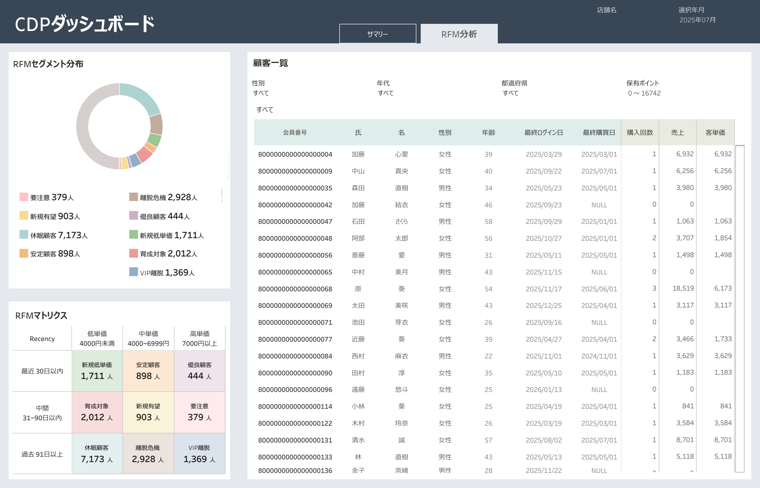 CDPダッシュボード(RFM分析)